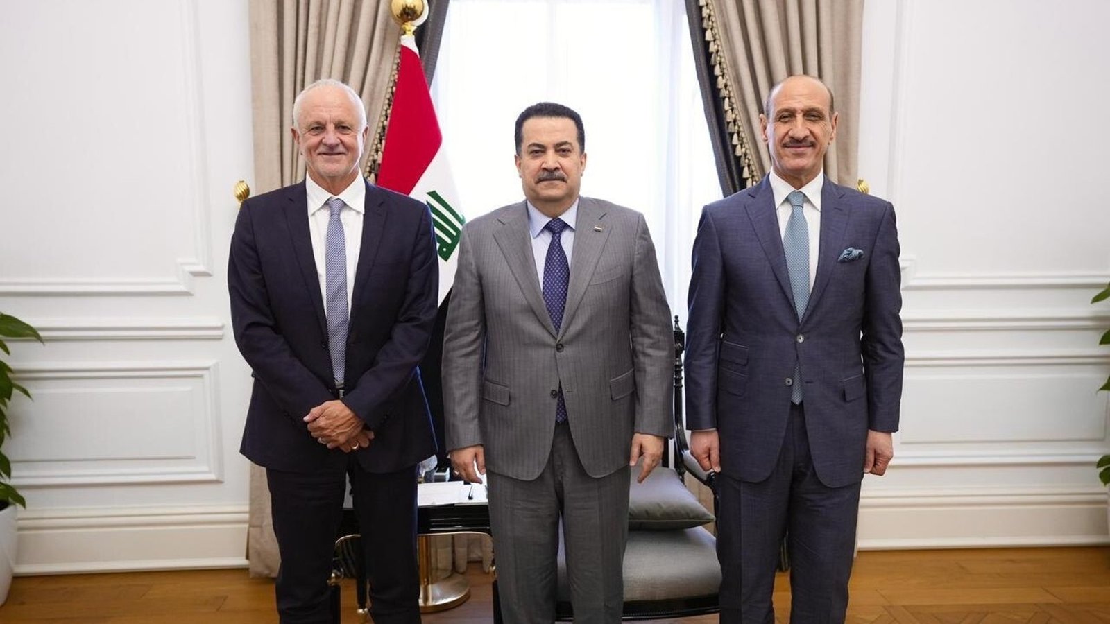 وجه رئيس الوزراء محمد شياع السوداني، خلال لقاء رئيس اتحاد الكرة عدنان درجال ومدرب المنتخب غراهام أرنولد، اليوم السبت (21 شباط 2026) بتخصيص طائرة خاصة لنقل وفد المنتخب إلى المكسيك لخوض مباراة الملحق.